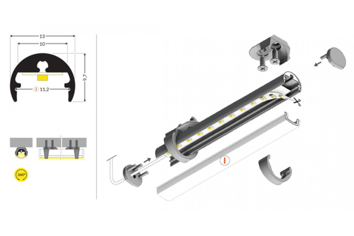 профиль LED PEN8 I 2000 анодированный