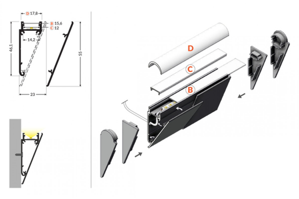 profil LED WALLE12 BCD 4050 alu.sur.
